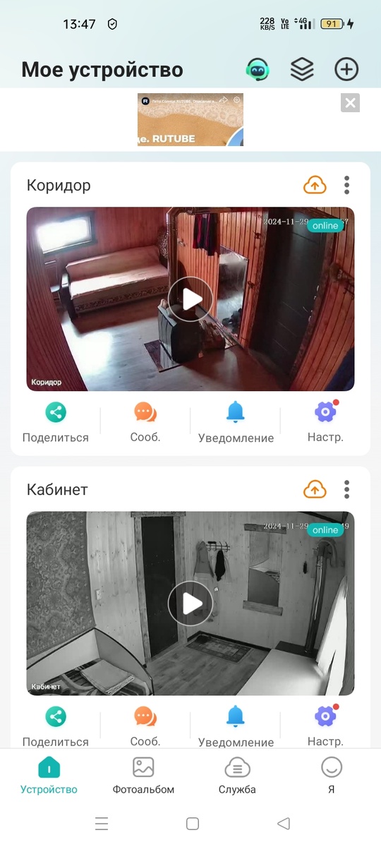 Также у меня произошло небольшое знаменательное событие — я начал монтаж системы видеонаблюдения. Пока установил только две видеокамеры внутри помещения. Всё настроено, и система уже функционирует. Камеры могут работать в двух режимах: цветной и инфракрасный (тогда изображение чёрно-белое)