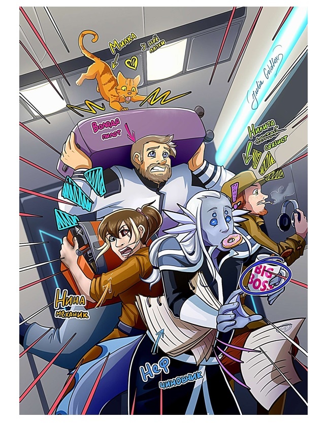Сегодня вас ждёт спецвыпуск, посвящённый очаровательной парочке девушки - киборга и инопланетянина. Они такие разные, но отлично смотрятся вместе и дополняют друг друга. Во вконтакте Джулии были арты и мини-комиксы подборки Космобиба и Косомбоба (официального названия у серии пока нет, только такое, шуточное). Они никак не связаны с "Ведьмой моего сердца", "Моим странным напарником" или "Тысячелетним". Это вполне самостоятельная вселенная. Вполне возможно, художницу Юлию Полякову (известную читателям под ником Джулия Голдфокс) вдохновили космические Рейнджеры. Или стелларис, например. Stellaris - компьютерная игра в жанре глобальной стратегии в реальном времени. Основа игрового процесса - исследование космоса, управление государством, военное и дипломатическое взаимодействие с другими межзвёздными державами. Примерно об этом же сюжет "Космобиба и Косомбоба". Ну, и ещё о взаимодействии членов экипажа между собой и всяких курьёзах повседневности жизни в космосе. Между девушкой и парнем