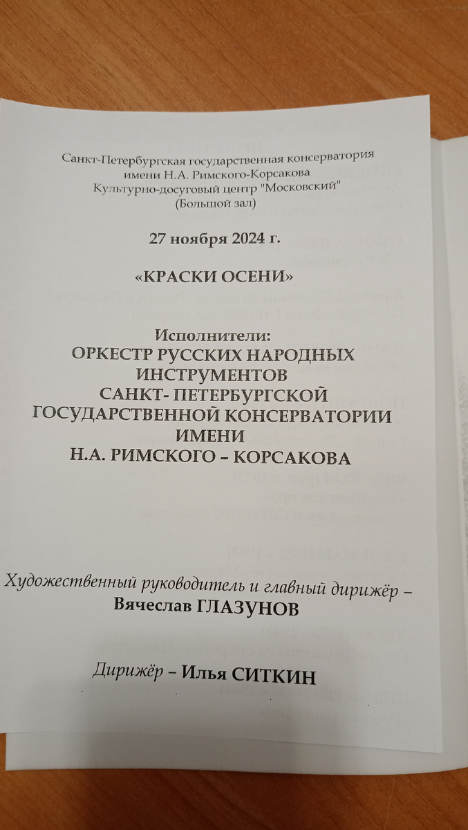 Ни одного лишнего слова, звука, минуты. И шëл он всего час, но так был наполнен красотой, что иной концерт за два -три часа не даст таких впечатлений. Да и (если честно) утомляют меня долгие концерты, да и время сейчас тëмное, и позднее возвращение домой напрягает. А тут всë замечательно! Концерт этот порадовал, впечатлил, не утомил. И домой вернулась около девяти вечера. Выступал Оркестр русских народных инструментов Санкт-Петербургской государственной консерватории имени Римского-Корсакова. Бесплатный концерт, но чтобы получить билет, надо было на сайте зарегестрироваться. На почту пришли билеты. Это сделала Лена и за это ей большое спасибо! Ленусик у нас, как и Оля, просто клад по таким мероприятиям🙏. Вот хорошо всë же, когда компания! И получается большой выбор, куда пойти. И всегда есть с кем пойти! Интереснее, когда ты не один. И есть с кем разделить чувства и эмоции. И чаще всего впечатления совпадают! Этот концерт очень понравился всем. А ходили мы четверо. Концерт вëл