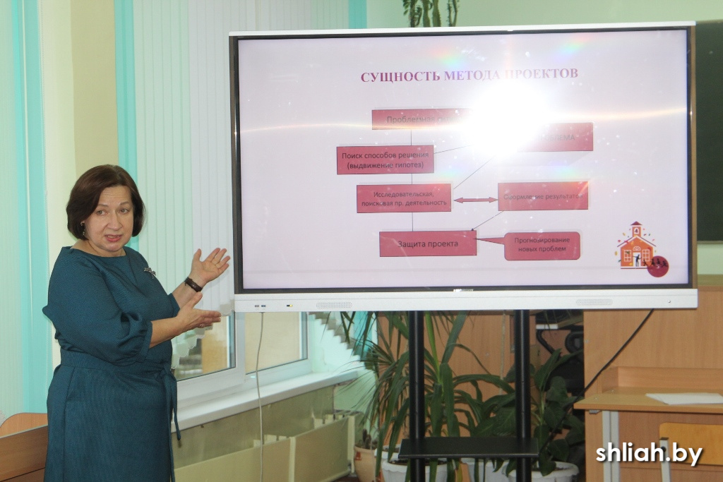 Сегодня в гимназии продолжил свою работу республиканский педагогический форум для руководителей методических формирований и учителей-предметников учреждений образования. Программа второго дня была не менее интересной и насыщенной. Участники форума побывали на открытых уроках по русскому языку и предмету «Человек и мир» с использованием проектной технологии. Педагогам также презентовали проекты гражданско-патриотической направленности. В интерактивной форме были представлены экспонаты времен Первой мировой войны, найденные на территории Сморгонского района, виртуальный историко-краеведческий музей «История. События. Люди», материалы совместного проекта учащихся начальных классов гимназии, Сморгонского радио и телевидения, который посвящен 80-летию освобождения Беларуси от немецко-фашистских захватчиков. Педагоги приняли участие в мастер-классах. В ходе уроков для взрослых они освоили методические приемы, направленные на развитие коммуникативных навыков в ходе проектной деятельности, при
