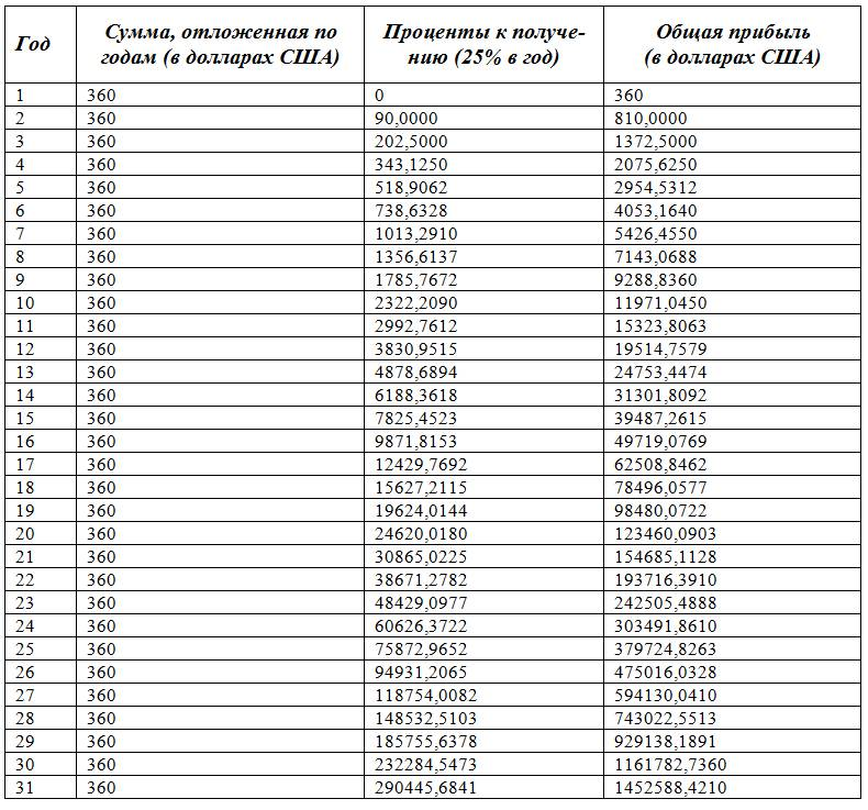 Второе правило. Для вас откроется целый удивительный мир, но не советую рассказывать об этом соседям и прочим окружающим вас людям. Это просто плохо кончится. Людям по большему счёту безразличны ваши деньги и успех. Это может вызвать у них только зависть и неприязнь к вам. А заниматься этим они все равно не будут. Им это или не интересно, или не считают себя способными на это. Большинство людей, узнав, что если они будут каждый день откладывать по доллару, под двадцать пять процентов годовых, смогут через тридцать лет иметь немногим более миллиона долларов, просто будут в состоянии восхищения. Скажут, возможно, что-то вроде — «Ого! Ну да!». И всё, на этом всё и закончиться. Некоторые любопытные даже найдут необходимую литературу. Прочтут её, а потом забудут, или будут её пересказывать в компаниях, но дальше этого дело не двинется. Так же будут и такие личности, которые будут сыпать фактами и говорить, что постоянно получать двадцать пять процентов годовых невозможно. А ряд очень эрудированных приведет вам пример, что за всю историю только одному инвестору удалось на протяжении шестидесяти лет зарабатывать больше двадцати процентов прибыли в год. Это всем известный американский инвестор Уоррен Баффет. Не стоит с ними спорить. Темпы роста в каждой стране просто разные, и в развивающихся странах они намного выше, поэтому и выше норма прибыли. Некоторые предприниматели даже смогут вам возразить, сказав, что нормы доходности их бизнеса намного превышают это число. Самое же главное всегда стоит помнить, что тот, кто пытается сделать, всегда имеет пусть хоть небольшой, но шанс на успех, а тот, кто не делает, не имеет и этого.