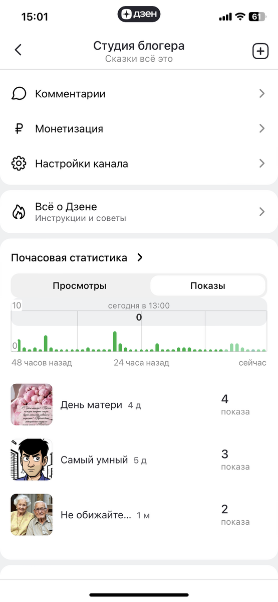 И показов - 0 И просмотров, конечно же, тоже))) М-да, печальная картина! Повод где для эндорфина? Дзен, прибавь-ка креатива Для сплошного позитива😃 Друзья, а как у вас обстоят дела с показами? Надеюсь, намного лучше😉🤞