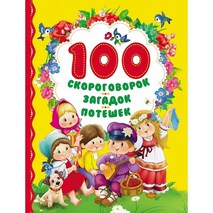 Опять книжка, которую в глаза не видела, но хотелось бы посмотреть. Увы, не дано. Росмэн 100 скороговорок, загадок, потешек - замечательный сборник в который вошли самые лучшие скороговорки, загадки и потешки, они смогут не только развлечь и повеселить ребенка, но также и помогут развить смекалку и интеллект. Классические, узнаваемые с детства, тексты преподносятся в шикарном оформлении и сопровождаются красочными и яркими иллюстрациями, на которых малыш сможет увидеть множество известных сказочных героев. В книгу вошли как известные народные загадки, потешки и скороговорки, так и произведения замечательных детских поэтов: Корнея Чуковского, Ирины Токмаковой, Игоря Мазнина и других. На скриншотах всего парочка примеров: На нет и суда нет, давайте сегодня эту скороговорку выучим: