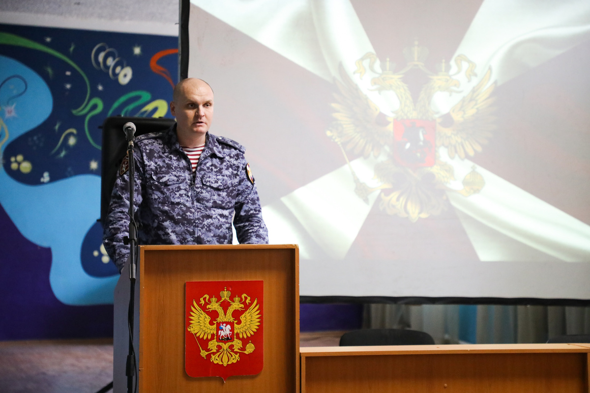 Помощник отдела по военно-политической (политической) работе Главного управления Росгвардии по Республике Крым и г. Севастополю капитан Евгений Лычковский коснулся исторического экскурса и рассказал правоохранителям о роли генерала Комаровского в истории становления войск правопорядка.