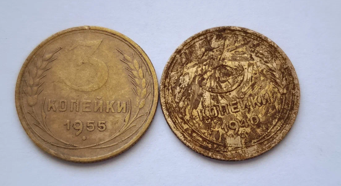 Пробую определить разновидности двух бронзовых советских монет 3 копейки