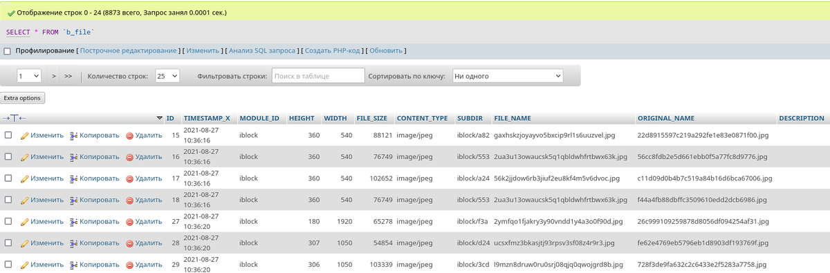 Битрикс хранит пути к изображениям в таблице b_file. Путь содержится в атрибуте SUBDIR.