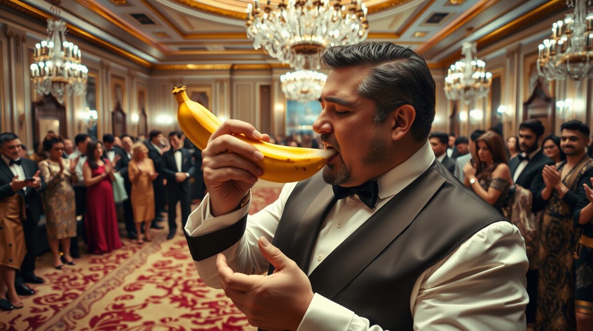 Недавняя покупка китайского миллионера Джастина Сана привлекла внимание общественности и вызвала бурные обсуждения в мире искусства. 21 ноября 2021 года на аукционе Sotheby’s в Нью-Йорке Сан, 34-летний основатель криптовалюты TRON, приобрел ироничное произведение итальянского художника Маурицио Кателлана под названием «Комедиант». Это произведение представляет собой банан, приклеенный с помощью скотча к белой стене. Кателлан сам описал свою работу как «провокацию», которая заставляет зрителей задуматься о ценности искусства в современном обществе, где все большее значение придается концепту и идее, а не традиционным материалам. Цена, за которую был приобретен банан, составила колоссальные 6,2 миллиона долларов. Эта сумма шокировала многих, ведь по сути, произведение состоит из обычного фрукта и скотча. После завершения аукциона Джастин Сан сделал заявление о том, что вскоре планирует съесть банан, что вызвало еще большее удивление и интерес к его покупке. 29 ноября, в одном из самых д