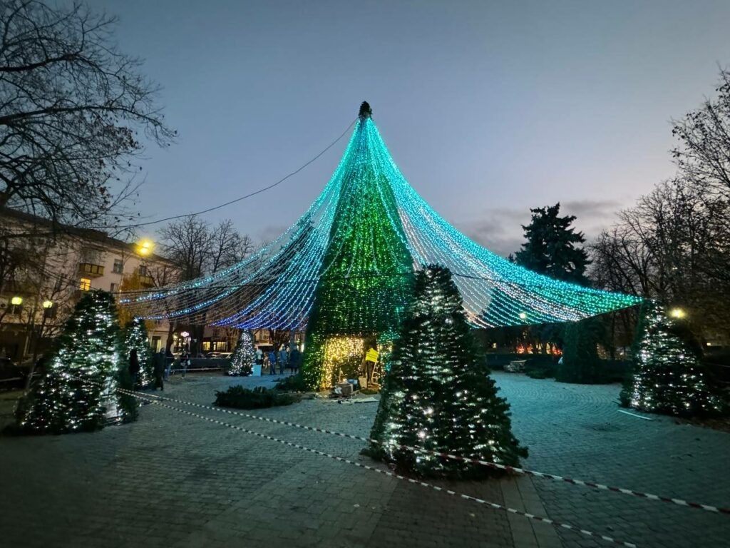 Найти лесную красавицу можно на ул. Красной, 135 напротив корпуса КубГТУ. Иллюминация работает в тестовом режиме.