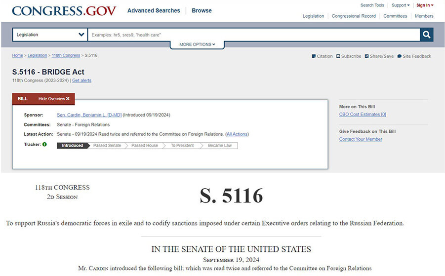 Законопроект внесен в Сенат 19 сентября 2024 года, после этого он был дважды прочитан и передан в Комитет по иностранным делам. Голосование еще не проводилось. Профессор политологии Южного методистского университета Келвин Джилсон предполагает, что Конгресс может рассмотреть возможность введения особых послаблений для въезжающих в США выходцев из стран бывшего СССР, в частности России и Украины. Однако после победы Дональда Трампа позитивный исход дела вызывает сомнения.