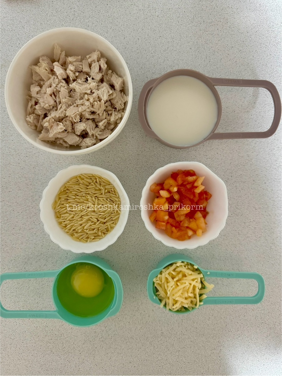 Что любят все детки? Конечно же - макароны! 🤭 А давайте разнообразим ужин , и, приготовим очень вкусную запеканку! Можно готовить сразу для всей семьи 🤪 Ингредиенты: Готовим! 👩🏼🍳 Берем форму для запекания и укладываем ингредиенты слоями: 1 слой: паста орзо 2 слой: куриное филе (у меня было вареное, но можно и сырое, можно даже в виде фарша) 3 слой: затем мелко нарезной помидор 🍅 Яйцо взбиваем с молоком, эту же смесь подсаливаем (если еще не подсаливаете пищу малышу, то без соли) И заливаем этой смесью слои запеканки : Затем , ставим в разогретую духовку и выпекаем при температуре 180 градусов в течении 25 минут , после чего достаем и посыпаем тертым сыром И запекаем еще в течении ≈5 минут, чтобы сыр расплавился