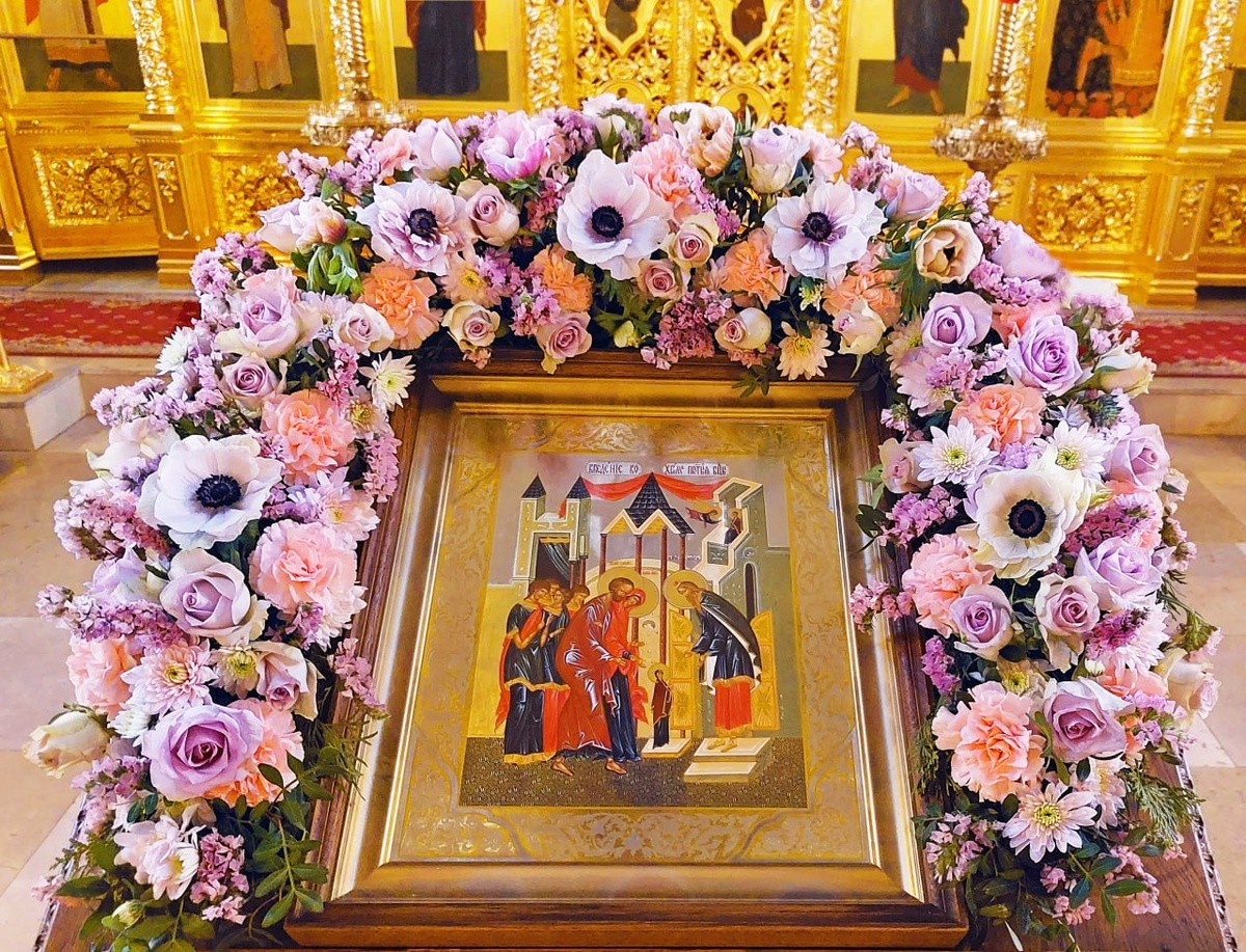 Введения во храм Пресвятой Богородицы. Цветочное оформление иконы. Для храма иконы Божией Матери Неувядаемый цвет в Рублёво.3 декабря 2023г
