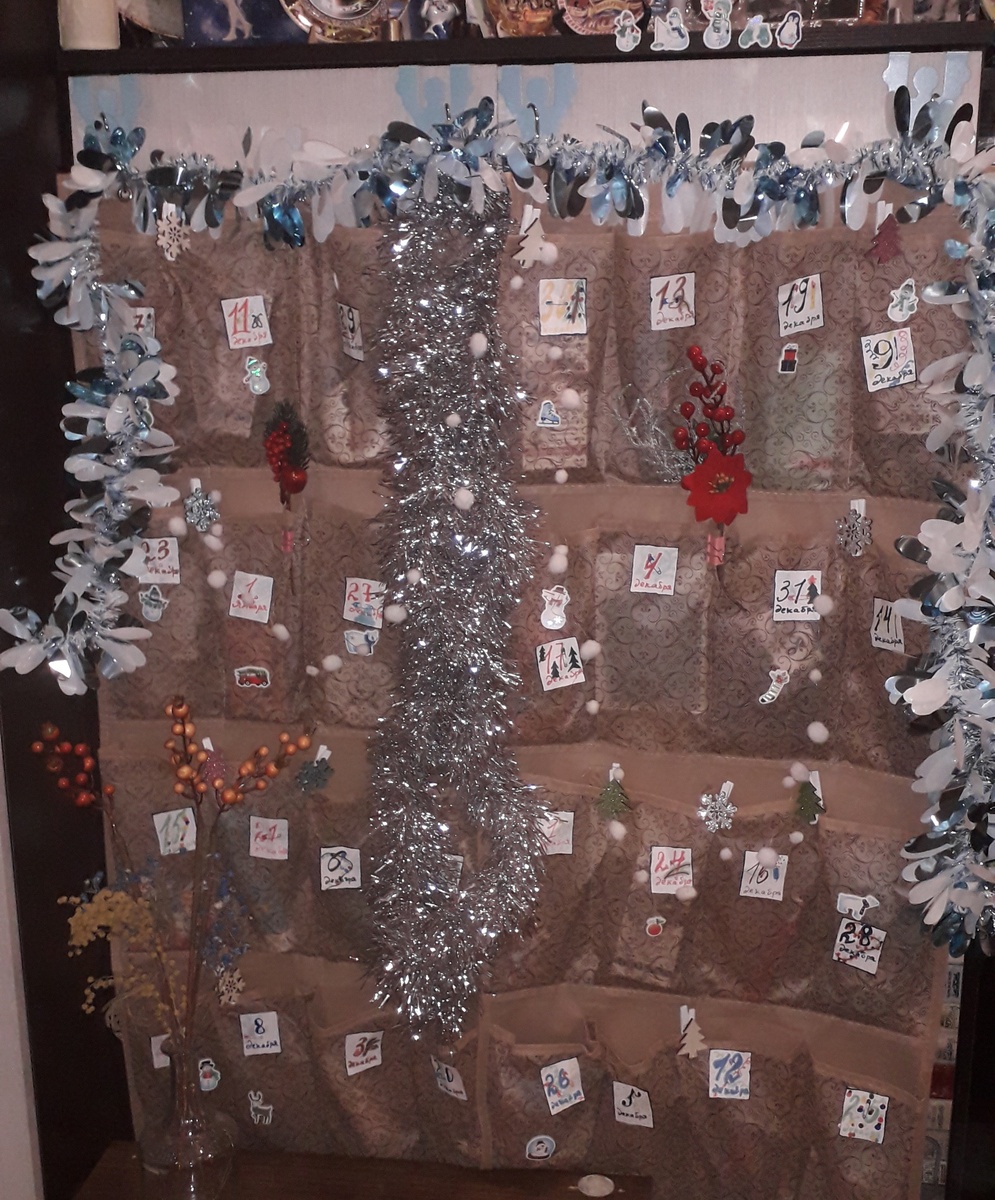Вот уже несколько лет подряд в конце ноября я делаю для Мамы «Календарь ожидания Нового года», который по-другому можно назвать «Адвент-календарь». Этот год не стал исключением и сегодня, первого декабря, Мама начала открывать календарь, в течении всего декабря она будет получать по маленькому сувениру, всё это можно купить просто так каждый день, но вот так сюрпризом, намного интереснее. Чудеса и сказка нужны даже взрослым, а может им даже больше, потому что у детей с волшебством, как-то отношения складываются проще, а вот во взрослой жизни его, ой, как не хватает. Как всегда, показываю вам, из чего состоит календарь и чем наполнен. Обзор состоит из трёх частей: 1. Из чего сделан 2. Как украшен 3. Чем наполнен В качестве основы календаря я снова использовала два настенных органайзера по 16 кармашков в каждом, соответственно мой календарь на 32 дня с 1-го декабря по 1-ое января, включительно. Эти органайзеры я купила несколько лет назад и использую их в третий раз. Даты календаря я в э