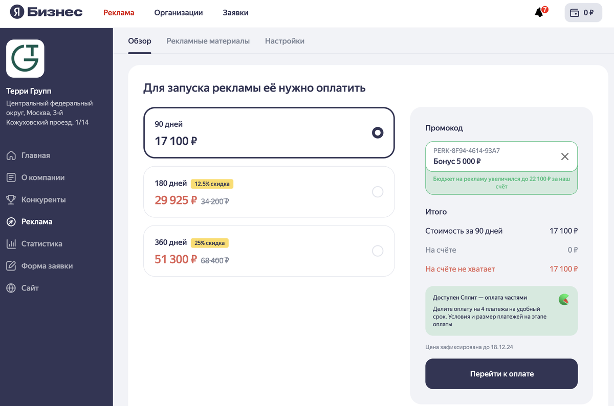Промокод Яндекс Бизнес 5000 ₽ на первую рекламную кампанию. Апрель 2026 года