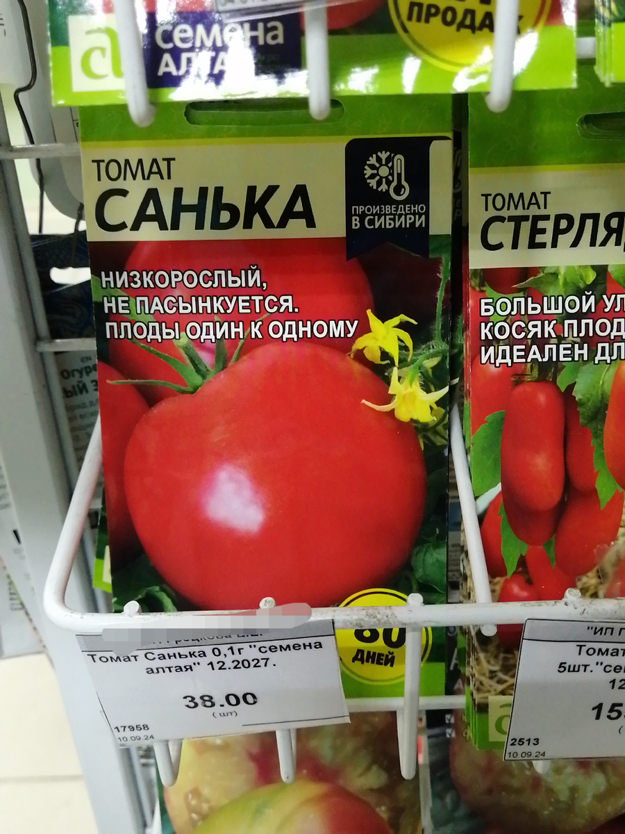 Для теплицы у меня есть томаты, в основном доставшиеся мне от мамы. Но иногда покупаю на распродажах на всякий случай, если недорого стоят. А вот для улицы у меня подходящих томатов нет. Мне нужны низкие, штамбовые, обязательно ранние, ну, и чтобы не мелочь была, а граммов хотя бы около 100. И цена чтобы была не выше 50 рублей, а лучше 30-40. Вспомнила, что соседка нахваливала Саньку. И первым на глаза попался мне именно Санька. Ну вот прямо то, что мне нужно: низкорослый, очень ранний, чуть меньше 100 граммов. И важно, что недорогой и семян не пять штук. Стала дальше искать семена с нужными мне характеристиками. Насчет ультраскороспелости преувеличено, созревает через 85-100 дней. Но зато семян насыпали 0,2 грамма. Это же примерно 50 штук! Ну и вес помидорок Дубравы может превышать 100 граммов. Дубраву купила наугад, никто из знакомых не советовал. Семена Утенка тоже купила чисто интуитивно. Не совсем он ранний, а скорее среднеранний - 100-105 дней. Масса плодов, как у Саньки,