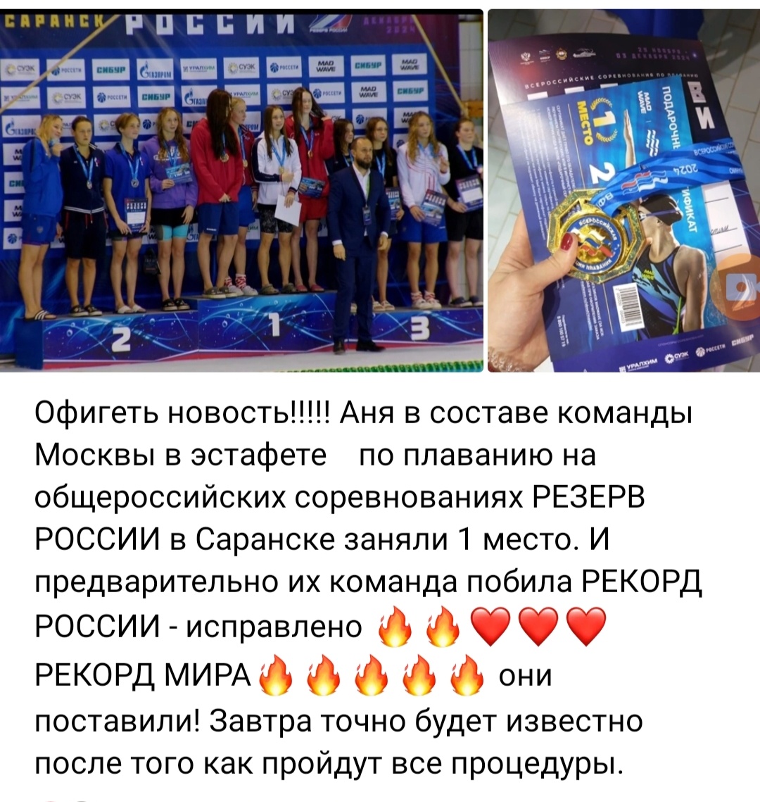 Моя дочка поставила рекорд Мира по плаванию. Только что. Эстафета, команда Москвы.