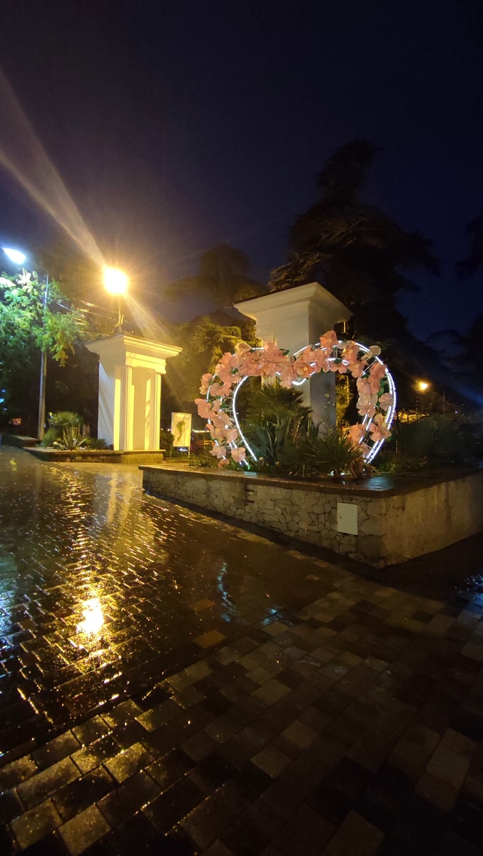 День-то настал, и обычно на этот день в планах ещё раз пройтись по городу, накупить, если не успели, сувениров. Но вот как-то с самого утра не заладилось с погодой. Сегодня почти целый день в Алуште шел дождь, как с вечера начался, так и не прекращался. Но кто ж нас остановит))) Как говорится: "Видим цель, не видим препятствий". 😄 Это мы из дома без необходимости не вышли бы в такую погоду, а в отпуске - это другое 😉. Ну, и пошли... Вышли на набережную через парк, а там единицы, кто гуляет. Дождь ☔пошел сильнее. А мы шли за сувенирами, дышали морем. В кафе "Старик Хинкалич" в кои-то веки никого. На набережной установили новогодние инсталяции. Свечи пока без подсветки, но все еще впереди. Так интересно... когда соседствуют новогодние украшения, и тут же ещё цветы на клумбах ☺ Пройдя набережную свернули на улицу Горького. Там тоже немноголюдно, только спешащие по своим делам местные жители. Даже машины редко ездят. Нагулявшись по магазинам, и закупившись сувенирами, вернулись
