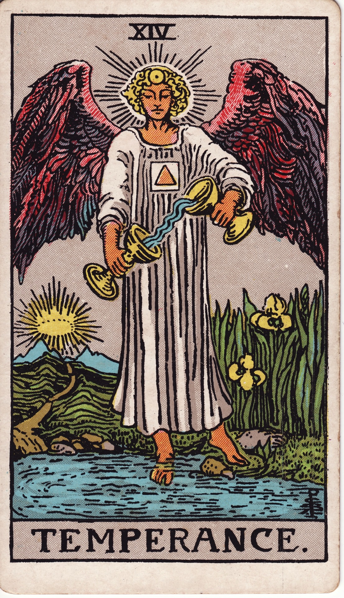 Давайте разберём, как именно эта карта может стать вашим мудрым наставником в жизни. На карте изображён Ангел (или человек с явным чувством стиля, если вы не верите в крылья), который неспешно переливает воду из одного сосуда в другой. На заднем плане — гора, символ цели, а у ног — река жизни, символ того, что мы всё равно куда-то идём, даже если пока бультыхаемся на месте. Ключевой момент: этот Ангел — мастер микса. Неваж