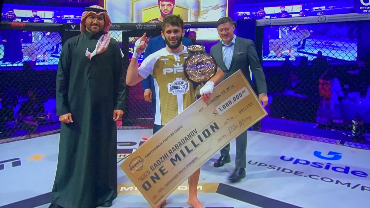 В Эр-Рияде Саудовской Аравии продолжается итоговый турнир года PFL. В одном из поединков главного карда даргинец из села Кунки Гаджи Рабаданов нокаутировал американца Брента Примуса. Они сразились в финале Гран-при в легкой весовой категории. Рабаданов на протяжении двух стартовых раундов доминировал над своим соперником, изматывая того в партере. Примус порой старался контратаковать и ловить своего соперника на болевые. Но Гаджи выходил из неудобных для себя положений. А потом он начал вести бой в стойке, где потряс Брента и без проблем того добил. Гаджи победил Брента Примуса нокаутом, стал чемпионом PFL в легком весе и заработал миллион долларов.