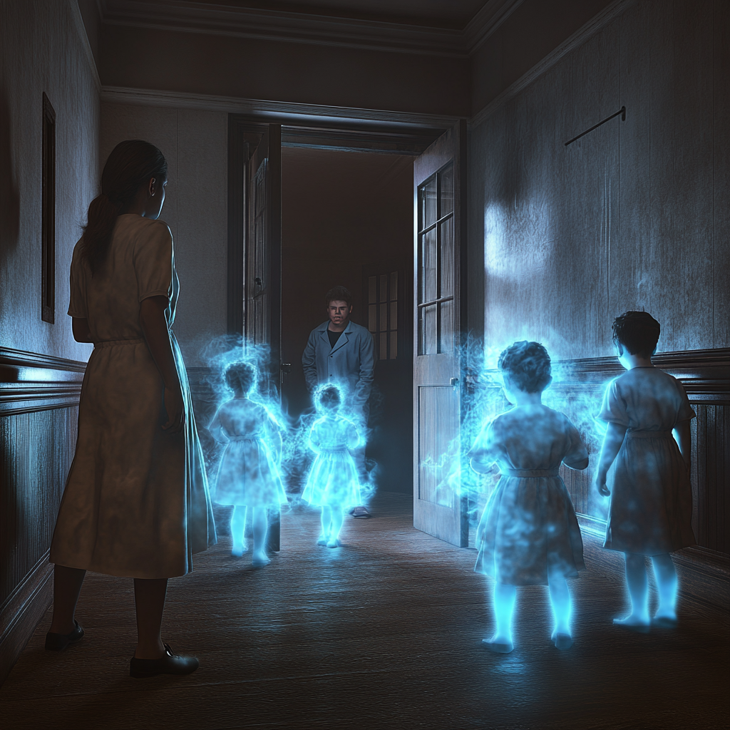 [Запись продолжается, слышно тяжёлое дыхание] *"23:58. Я в старом крыле. Знаю, что нарушаю правила отца, но... После того, что я нашла в его кабинете..."* [Шорох бумаги] Дневник отца, последняя запись: *"Эксперимент вышел из-под контроля. Мы думали, что создаём лекарство от рака, используя их особые способности. Но препарат NS-147... Он изменил их сознание. Когда Маша, самая сильная из них, показала мне будущее... Я видел темноту. Бесконечную темноту."* [Внезапный скрип двери] *"Боже... В конце коридора... Это же... Маша?"* [В записи слышен голос маленькой девочки:] *"Здравствуй, Анна. Мы ждали тебя. Твой папа хотел всё исправить, но время ещё не пришло."* [Звук множества детских шагов] *"Вы... Вы не призраки, верно? Препарат... Он законсервировал вас во времени?"* *"Умная девочка. Как и твой отец. Он не умер, Анна. Мы забрали его, чтобы защитить. Они возвращаются. Те, кто создал NS-147. И теперь им нужны новые дети."* [Громкий шум, сирены вдалеке]