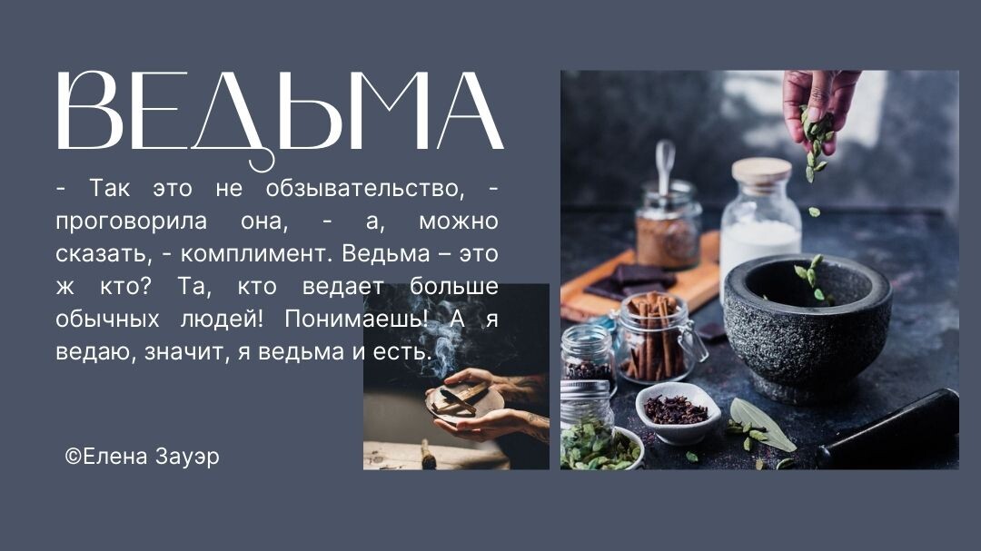 — Так это не обзывательство, — проговорила она, — а, можно сказать, комплимент. Ведьма – это кто? Та, кто ведает больше обычных людей!