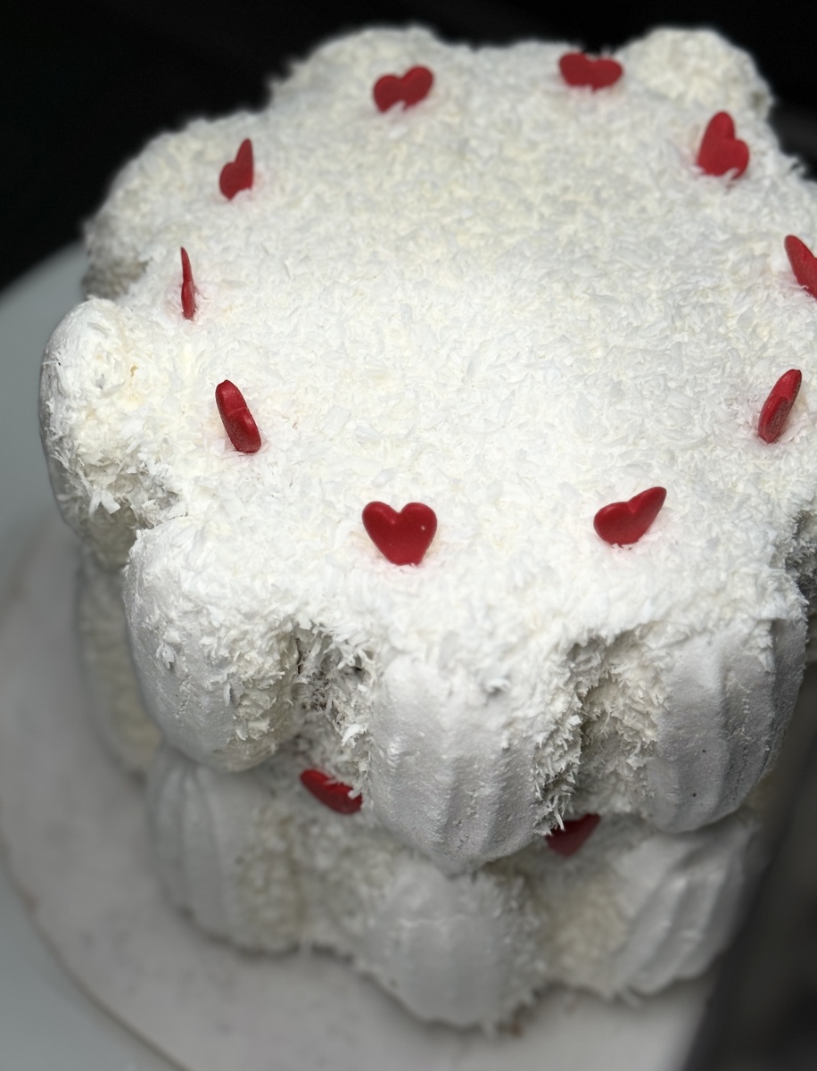 Сегодня я поделюсь рецептом невероятно быстрого и красивого мини-тортика, который покорит вас своей простотой и вкусом. Идеально для неожиданных гостей, просто для поднятия настроения или для праздничной фотосессии😉 Что нам понадобится: • 3 готовых бисквитных коржа (из них получилось 9 ярусов. Я вырезала 6 целых кругов и 3 из половинок!) • 150 мл молока (в рецепте было 170 мл, но я решила сделать крем погуще – и не пожалела!) • Сливочный крем для торта (мне понравился от фирмы радость вкуса) • Кокосовая стружка 40 гр • Безе (для декора) • Пропитка (коньяк или кофе) • Круглая форма для выпечки диаметром 10 см • Кондитерский мешок (можно заменить плотным пакетом с отрезанным уголком) • Сердечки из кондитерской посыпки (по желанию) Готовим за 30 минут: 1. Подготавливаем коржи: Из готовых бисквитных коржей вырезаем круги, у меня получилось 9 ярусов! 2. Готовим крем: В соответствии с инструкцией на упаковке крема, добавляем 150 мл молока (или чуть больше, по вкусу). Перекладываем го