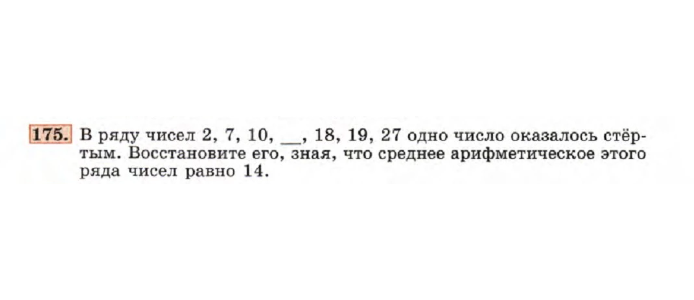 Алгебра, 7 класс. Упражнение 175. Восстановить число из ряда чисел, если известно среднее арифметическое
