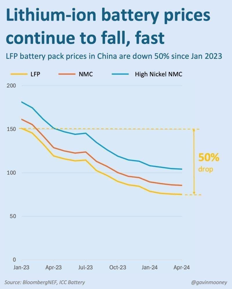 Продажи электромобилей и гибридов в Китае достигли переломного момента. За последние четыре месяца, начиная с июля, они составляют больше 50%. И это говорит, что спрос на бензин начинает снижаться, и это может существенно повлиять на мировой нефтяной рынок. Ведь Китай — крупнейший в мире импортер нефти, и его потребление составляет почти 20% от мирового спроса. Аналитики и эксперты пересматривают свои прогнозы. CITIC Futures ожидает, что потребление бензина в Китае будет снижаться на 4–5% ежегодно до 2030 года. Международное энергетическое агентство (IEA) также отмечает, что будущее наступает быстрее именно в Китае, и это повлияет на глобальный спрос на нефть в ближайшие годы. В то же самое время Bloomberg подсчитал, что стоимость LFP батарей (литий-железо-фосфатные) снизилась на 50% с января 2023 года. Одновременно с этим из Европы приходят новости о legacy-производителях, которые на фоне снижения спроса на электрокары, возобновляют программы развития и разработки ДВС. @PlusMin
