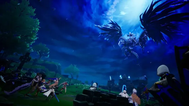Птицеобразные существа, которые могут плавать под водой. - Боевая система:Сражения напоминают динамичные механики Genshin Impact — с мощными атаками, спецэффектами и широким выбором оружия.