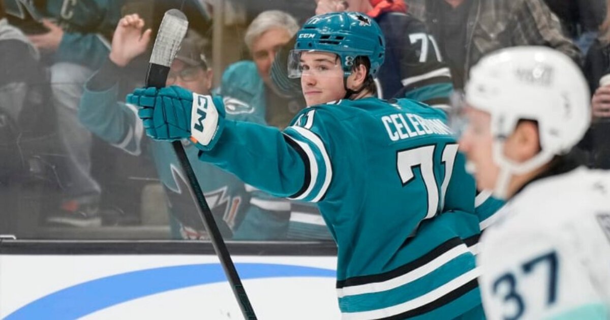 Селебрини забил 8-й гол в сезоне НХЛ и догнал Мичкова в гонке снайперов среди новичков. У форварда «Сан-Хосе» 13 очков в 14 играх