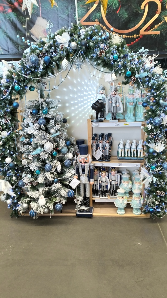 В четверг по пути заехала в бывший Леруа (сейчас Лемана Про, язык не поворачивается))). Мне нужны были лампочки, поперегорали все, что-то, похоже, в моей комнате в светильнике с контактами не то, лампочек на пару лет только хватает, так не должно быть))) честно-честно. На кухне вот, за 10 лет в этой квартире только 1 раз меняла, в комнате Алисы, правда, меняли весь светильник, так что не скажу, как там. В ванной, туалете и коридоре точечные стоят, ну, их не так часто включаешь, конечно, но щелкаешь туда-сюда, электроприборам это вредно. Тут тоже только одну лампочку меняла из 9, после того, как меня соседи залили. Заехала, значит, на минутку и только за лампочками. А там... Столько новогоднего... Глаза разбегаются! Разве можно мимо такой красоты пройти?! Вот такими стендами украшено всё. 4 стенда в разных цветах: бело-голубой, красный, лиловый и золотой. И все фигурки, шарики, шишечки, бусики в тон. . И отдельно всякие игрушечки и украшения, тоже по тонам расположены, осталось толь