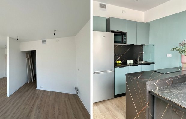 Как быстро и стильно преобразили скучную двушку 32 м² с белыми стенами от застройщика