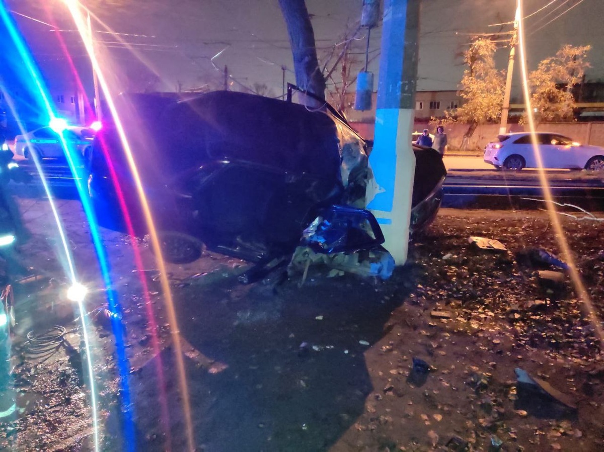 «Приору» с 17-летним подростком без прав за рулем «намотало» на столб и дерево в Волгограде