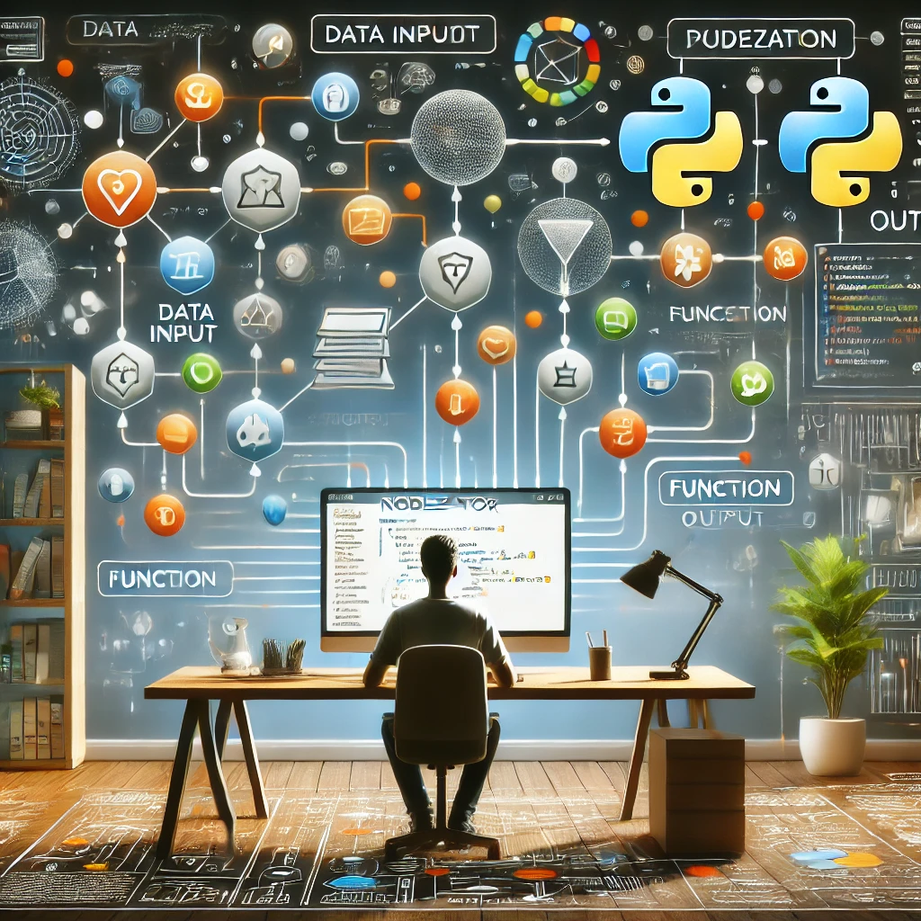 Nodezator — это инструмент для визуального программирования, который позволяет создавать приложения и сценарии, соединяя узлы (nodes) на графическом интерфейсе. Каждый узел представляет собой определённую функцию или действие, а связи между ними задают логику выполнения программы.