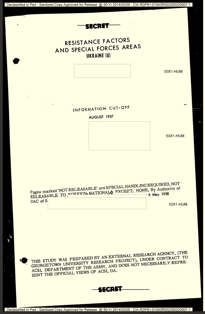 67 лет назад, в августе 1957-го, ЦРУ подготовило и разослало секретный доклад «Факторы сопротивления и зоны действия специальных сил. Украина». Этот объёмный 200-страничный «труд», похожий на докторскую диссертацию, для американской разведки подготовили сотрудники Джорджтаунского университета. И несмотря на налёт академичности доклад ЦРУ представляет собой подробную методичку по оккупации территории Украины силами специального назначения.
