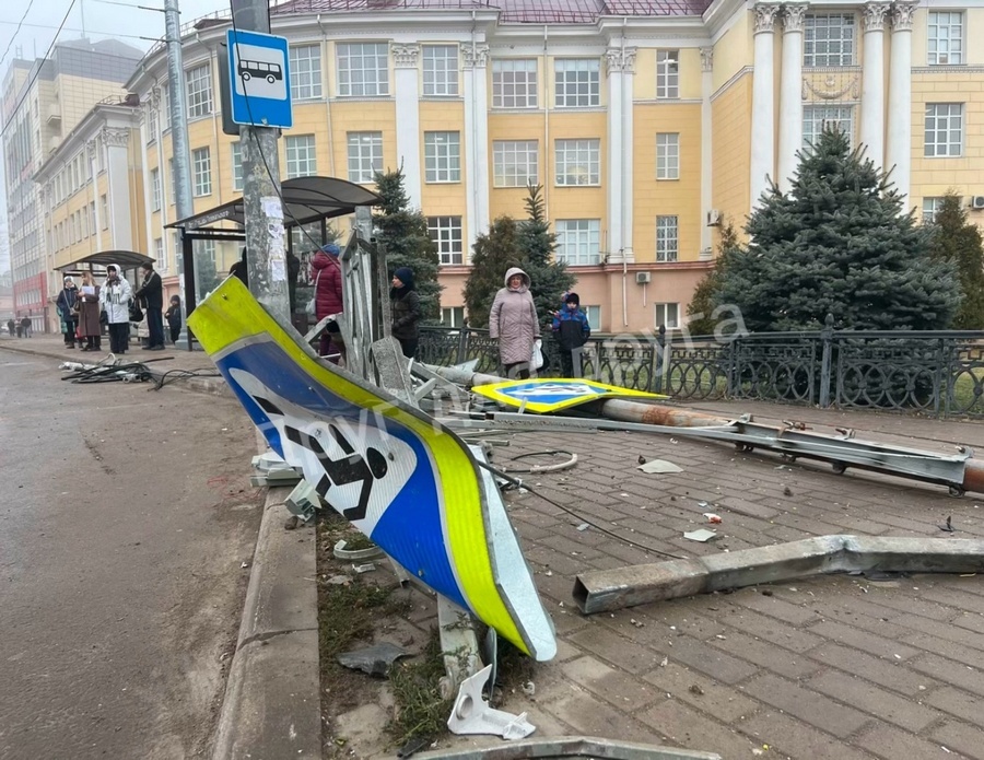 В Курске вылетевший на тротуар автомобиль снес остановку