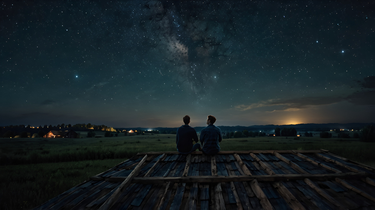 Мы разложили спальники прямо на земле, используя коврики как изоляторы. Над нами раскинулось ночное небо, усыпанное звёздами. Это было потрясающее зрелище. В городе я никогда не видел такого чистого неба.