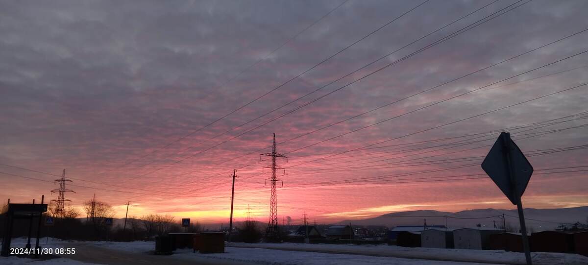 Вот и закончился ноябрь. Последний осенний день порадовал нас красивым восходом солнца. А когда оно вышло из-за сопок, то все скрылось в туманной дымке. За домами не видно ни озера, ни сопок, молочная пустота. Но зато какие красивые стоят деревья. В общем у нас уже полноценная зима. А к вечеру опять началась снеговая пороша. Так осень передает свои права зиме. А ведь где-то еще и снега нет, и дождь моросит, и грязь, и слякоть. В последний день осени я наконец отвечаю на вопрос-тему Олеси , автора блога Не скажу, а покажу . Она предложила написать стихотворение с такими словами: Про кошку уже есть, я про погоду. Ветер воет, грусть печаль, осень умирает. Муза нашептала мне его еще неделю назад, но мне захотелось дотянуть до последнего осеннего дня. Ведь действительно, осень сегодня уходит, "умирает", что бы потом снова возродиться. Прямо птиц-феникс. И так, стихотворение для Олеси. *** Печальный день Последний лист под воем ветра улетает. Снежинки падают с небес И тут же тают, тают, тают