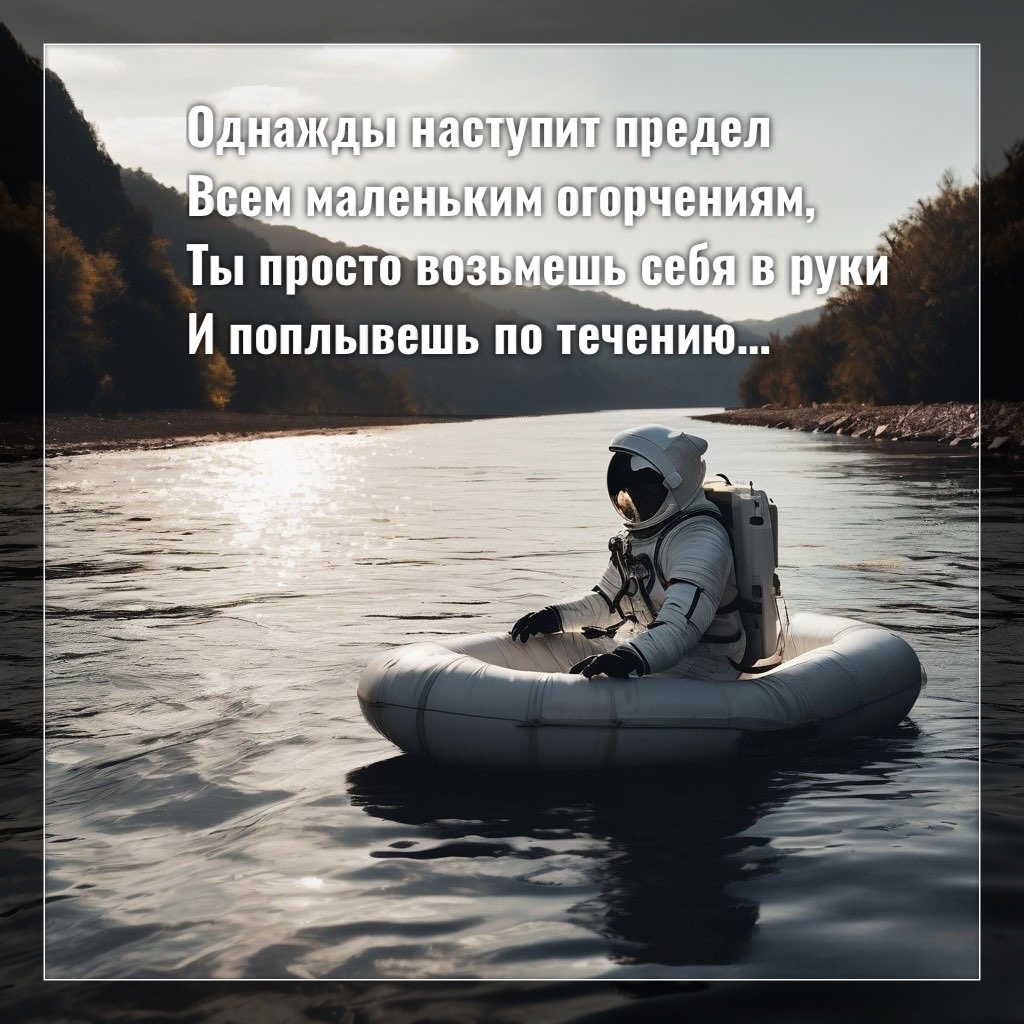 Однажды наступит предел Всем маленьким огорчениям, Ты просто возьмешь себя в руки И поплывешь по течению, Быть может там будет порог, Водоворот, причал, Ты просто готов ко всему, Что Бог тебе в жизни дал, Усилия проявляешь И не боишься сказать, Что ты устал от чего-то, Но будешь пытаться опять, Ведь жизнь - это взлеты, падения, А не страдания и лень, Жизнь - это краски новые, В пасмурный даже день, Жизнь проявляется в действиях, А не в слезах и апатии, Жизнь - это Божья любовь, Забота Его и объятия.