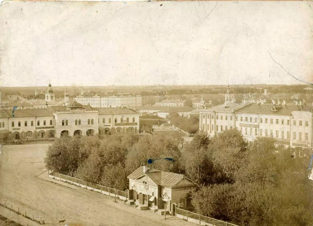 По центру снимка между гостиницей «Пассаж» и зданием торгового дома Свешникова, которое справа, виднеется одноэтажное здание рыбных рядов в устье Золотухи. Их разобрали в начале 1920-х, когда началось строительство в том месте электростанции. Потом в 1950-е здание электростанции переделали под спортзал.