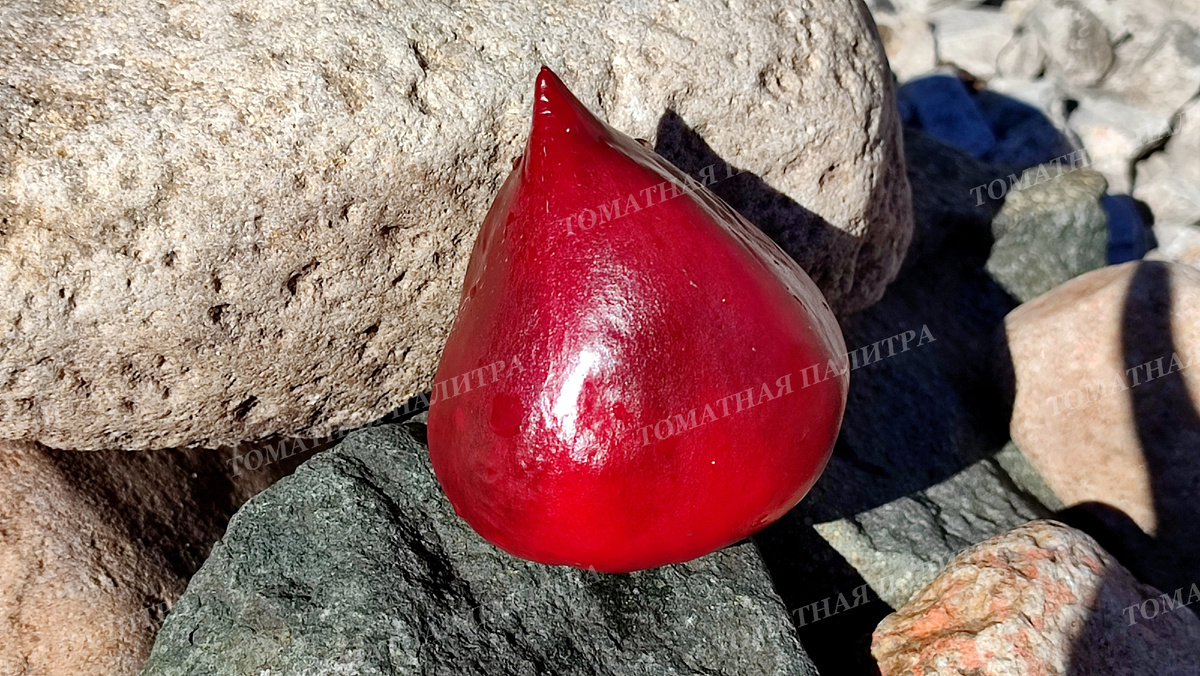 Эдакое яркое, супер глянцевое сердце с острым вытянутым носиком! В биологической спелости - фиолетово-пурпурное, а при полном созревании становится насыщенно бордовым, сохраняя пурпурный отлив... Шикарно смотрится...