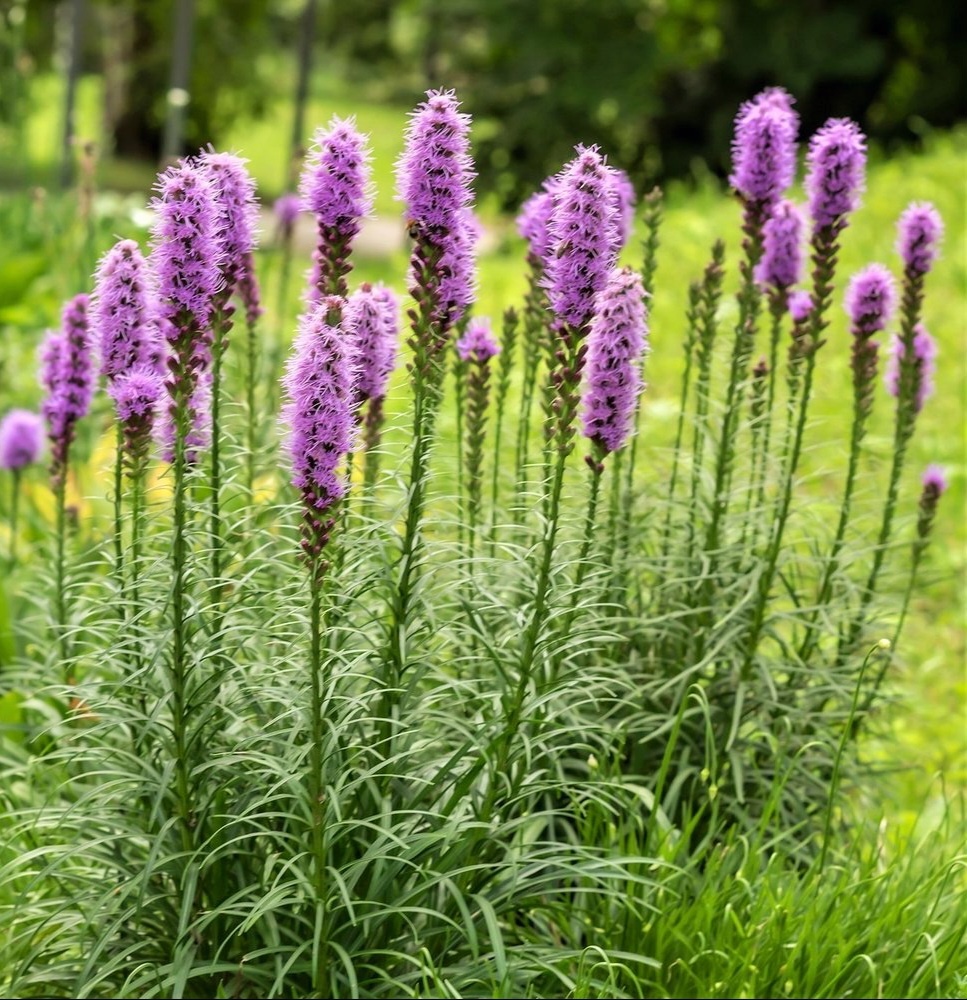 Этот эффектный многолетник становится украшением любого участка. Его пушистые соцветия-свечи выглядят очень экзотично и радуют длительным цветением в течении 1,5-2 месяцев. А какой приятный аромат они распространяют, в котором улавливаются нотки свежескошенного сена и ванили. Хотя это растение еще не часто используется в ландшафтном оформлении участков, но очень многие садоводы уже оценили его по достоинству, - за выносливость и невероятную красоту. Название этого многолетника - лиатрис. Высота этого растения может составлять до 1,5 метров. Колосовидные соцветия бывают фиолетовыми, розовыми, пурпурно-красными или белыми. Бутоны раскрываются поочередно сверху вниз по стеблю. Точное время цветения зависит от климатических условий, но обычно это июль-август. В народе растение называют "веселые перышки" или "олений язык". Лиатрис высаживают на открытом солнечном участке. Летнего зноя он не боится и прямые солнечные лучи ему нипочем. Не стоит сажать этот цветок на участках с тяжелой поч