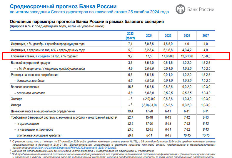 Вероятность того, что в декабре ставку поднимут все выше. Вопрос лишь на сколько. Прогнозы 23-25%. Но даже если сейчас поднимут на 23%, то нет гарантий, что в феврале 2025 года снова не будет повышения. Вероятно, уже последнего, после чего ставку начнут плавно снижать. Но это лишь надежды и прогнозы, так как еще летом 2024 года "аналитики" считали, что начнется снижение, а после этого ее повышали еще 3 раза. Поэтому сейчас главное иметь стратегию и придерживаться ее.