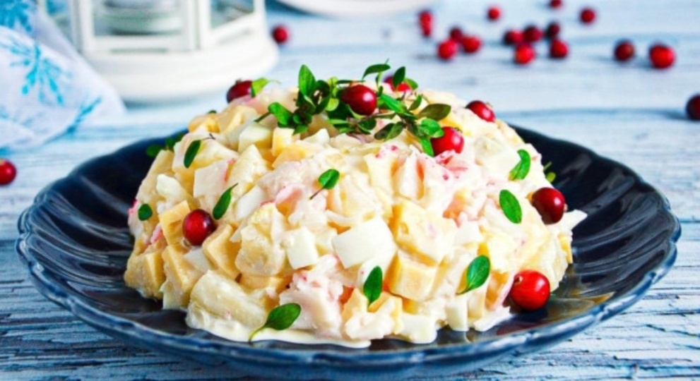 Крабовый салат — это блюдо, которое стало настоящей классикой на праздничных столах. Его любят за нежный вкус и простоту приготовления. Я предлагаю вам оригинальный рецепт, который добавит нотку новизны в этот всеми любимый салат. Давайте приготовим вкуснейший крабовый салат с ананасами и твердым сыром! 👍 Ингредиенты: Крабовые палочки — 200 гр (или крабовое мясо) Консервированные ананасы — 150 гр (кубиками) Твердый сыр — 100 гр Яйцо куриное — 3 шт Зеленый лук — по вкусу Майонез — 3-4 ст.л Соль, перец — по вкусу Листья салата — для украшения (по желанию) Приготовление: 1) Подготовка ингредиентов: - Крабовые палочки разморозить (если они были заморожены). Нарежьте их мелкими кубиками. - Консервированные ананасы откиньте на дуршлаг, чтобы избавиться от лишней жидкости. Если ананасы крупно порезаны, нарежьте их на маленькие кусочки. - Яйца отварите вкрутую. Для этого положите яйца в холодную воду, доведите до кипения и варите 10 минут. Затем охладите, очистите от скорлупы и нар