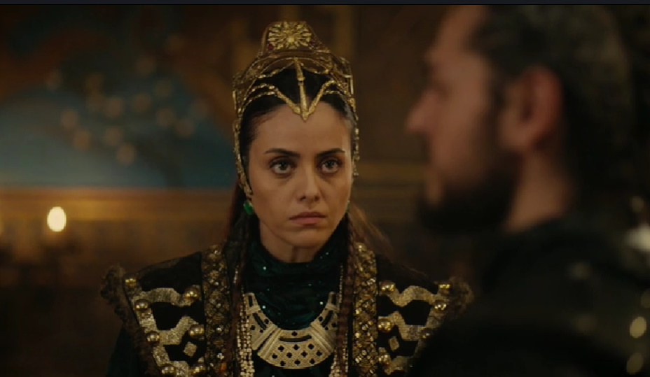 Салтук, Сырма, Яман и Темур с умилением смотрят на воссоединение матери и дочери, не зная, что к соляным пещерам подъехал Алпагу и тайно за ними наблюдает.