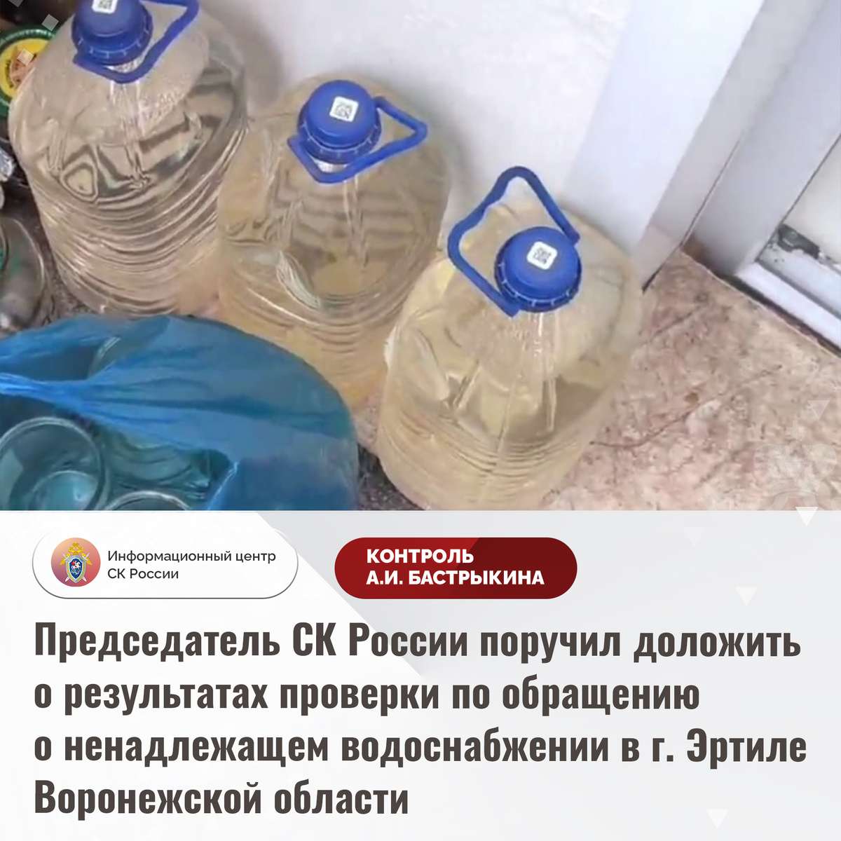 Председатель СК России поручил доложить о результатах проверки по обращению о ненадлежащем водоснабжении в г. Эртиле Воронежской области В Информационный центр СК России обратилась жительница Воронежской области. Она сообщила, что в городе Эртиле на протяжении нескольких лет жизненно необходимый ресурс поступает в жилые дома, социальные и образовательные учреждения с постоянными перебоями. В настоящее время из-за коммунальной аварии холодная вода не подается. Указанная ситуация получила распространение в СМИ. В СУ СК России по Воронежской области проводится процессуальная проверка. Председатель Следственного комитета Российской Федерации Александр Иванович Бастрыкин поручил и.о. руководителя СУ СК России по Воронежской области Ивану Владимировичу Ковалеву представить доклад о ходе и результатах процессуальной проверки, поставив ее на контроль в центральном аппарате ведомства. #СледственныйКомитет #СКРоссии #СКР #ИЦСКР #Информационныйцентр #АлександрБастрыкин #ПредседательСКР #КонтрольП