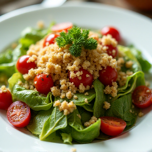 Салат получается очень легким и свежим, идеален в качестве гарнира к мясу, рыбе или как самостоятельное блюдо в жаркую погоду.