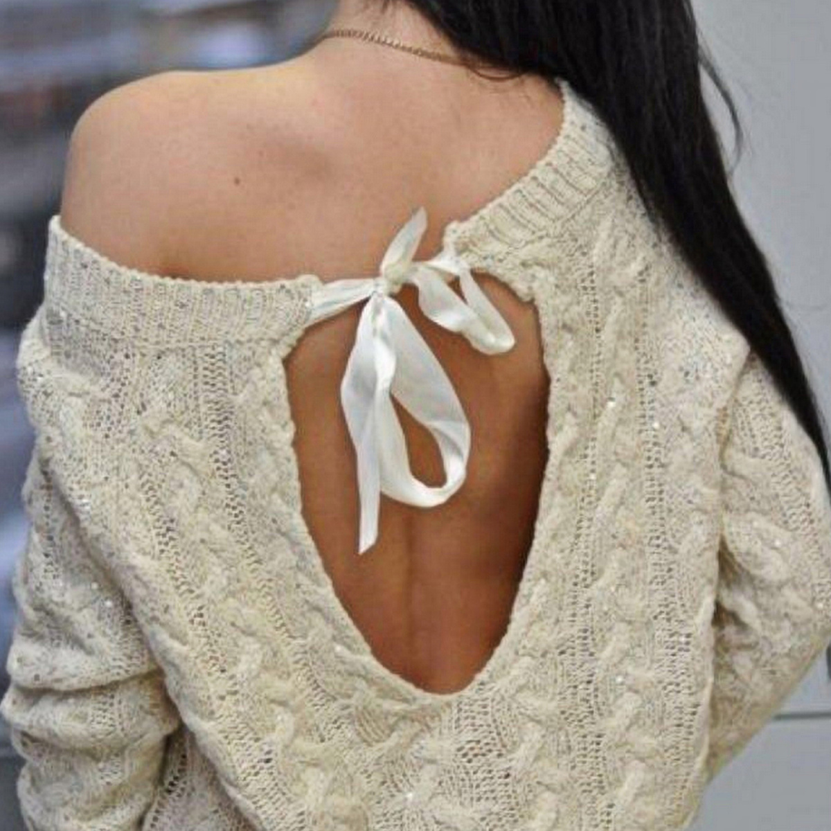 Самый простой (но не менее красивый) вариант — это сделать глубокий вырез и пришить широкие атласные ленты, которые можно будет завязывать красивым бантиком. С такой моделью справится даже новичок! Причём вырез может быть совершенно любым: маленький, большой, круглый, V-образный, U-образный, квадратный, капелькой — на что хватит вашей фантазии и умения! Сама вещь может быть как оверсайз, так и приталенная.