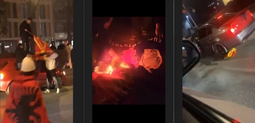 Тысячи албанцев собрались в центре столицы Северной Македонии – Скопье, чтобы отпраздновать День албанского флага. Участники массовой акции несли с собой флаги Албании и США, и только один раз подняли флаг Северной Македонии, что порвать его и сжечь, передает корреспондент «ПолитНавигатора». Массовые мероприятия прошли во многих городах и населённых пунктах Северной Македонии. Их характерной особенностью было наличие огромного количества албанских флагов, а также флагов страны-покровителя албанцев на Балканах – США. И при этом полное отсутствие флагов Северной Македонии, гражданами которой являлись бурно отмечавшие праздник представители албанской общины. Впрочем, один раз флаг Македонии появился в толпе празднующих, когда те вытащили его, порвали, а после демонстративно сожгли. Что характерно, полиция безучастно наблюдала за этим актом осквернения государственного символа, и только после того, как видео, запечатлевшее акцию вандалов, вызвало серьёзный резонанс в соцсетях и спровоциров