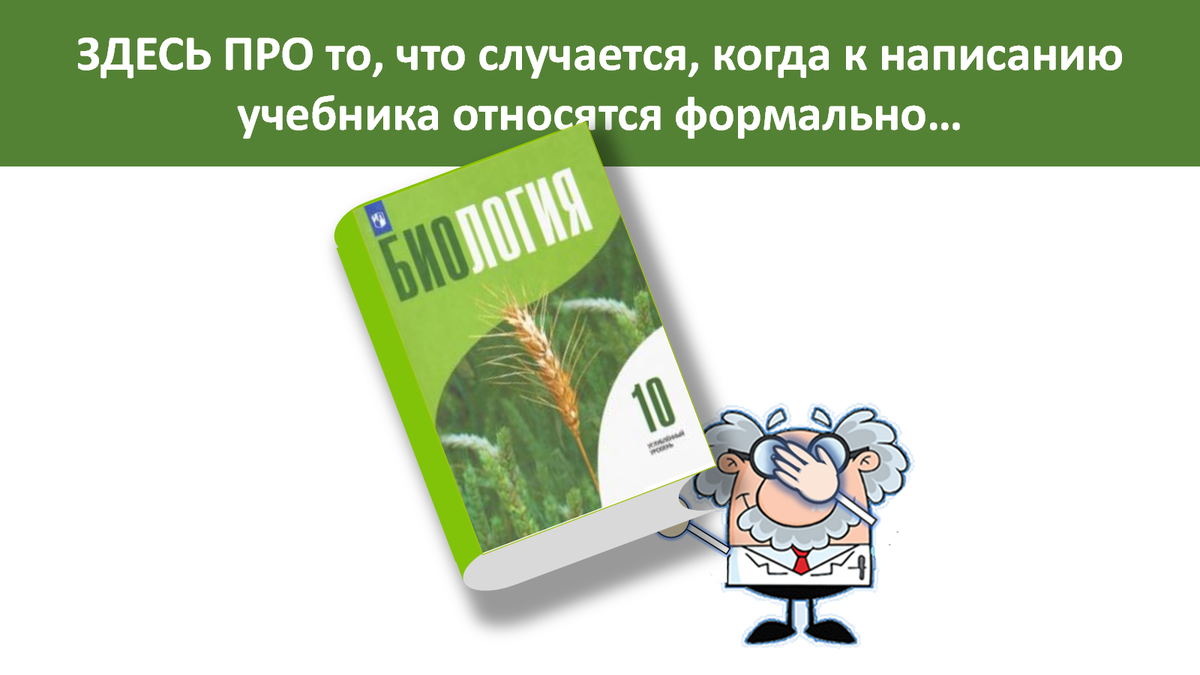 Решила десятиклассников оставить наедине с учебником. Необходимо же "создавать условия для развития ученической компетенции - работа с текстом" (требования Федерального государственного образовательного стандарта среднего общего образования по биологии)? Накануне сама занялась чтением параграфа, чтобы задания к нему придумать. Увязла уже на первом абзаце. Когда выбралась - поняла, что задание будет одно. Вот такое: найдите логические ошибки в данном тексте. В общем, наедине с таким учебником я учеников не решилась оставить, обсуждали прочитанное вместе. Вот, кстати, тот самый абзац: Вы сколько в нём логических ошибок отыскали? Мы - три. 1. Если всё содержимое клетки, за исключением ядра, носит название цитоплазмы, то как ядро может включаться в число компонентов цитоплазмы? 2. Как хромосомы, будучи составной частью ядра, могут являться самостоятельными органоидами? 3. Центриоли - это составные части клеточного центра. Почему при перечислении немембранных органоидов они упомянуты от н