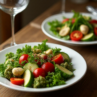 Вот подробный рецепт салата с булгуром и овощами: Ингредиенты: Инструкция: 1. Приготовление булгура: - Отварите булгур согласно инструкции на упаковке. Обычно, для этого нужно залить булгур кипятком в пропорции 1:2 (1 стакан булгура и 2 стакана воды), добавить щепотку соли и варить на среднем огне 10-12 минут. После того как вода впитается, снимите с плиты и дайте настояться под крышкой 5-10 минут. Затем разрыхлите булгур вилкой. 2. Подготовка овощей: - Помидоры нарежьте кубиками. - Огурцы нарежьте кружочками или полукружочками (по желанию можно очистить от кожуры). - Болгарский перец очистите от семян и нарежьте тонкими полосками. - Красный лук нарежьте полукольцами. - Зеленый лук нарежьте мелко. - Если используете чеснок, очистите его и нарежьте или выдавите через пресс. 3. Сборка салата: - В большой миске смешайте приготовленный булгур и все нарезанные овощи. - Добавьте мелко нарезанную зелень (петрушку, кинзу или базилик). - Для заправки выжмите